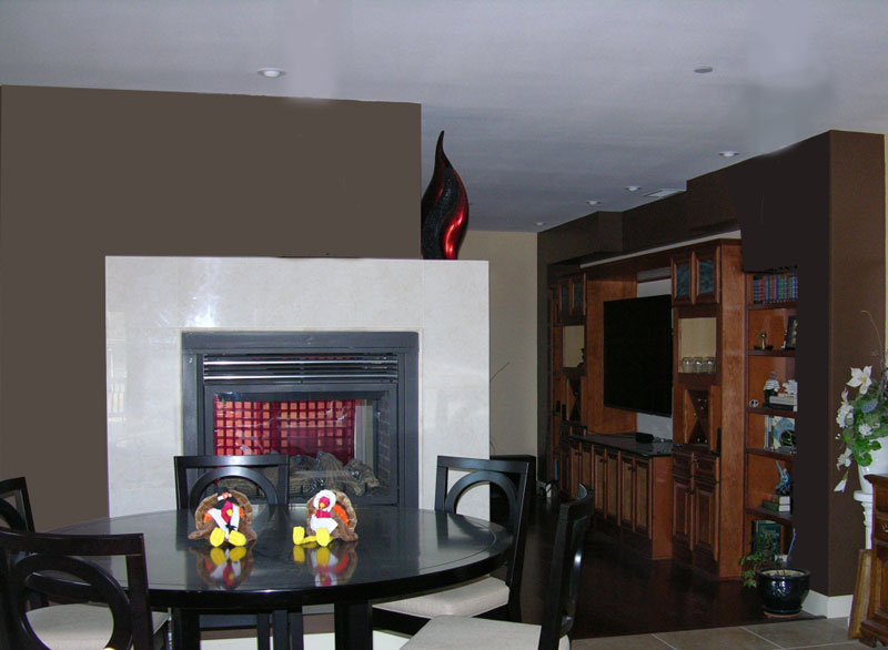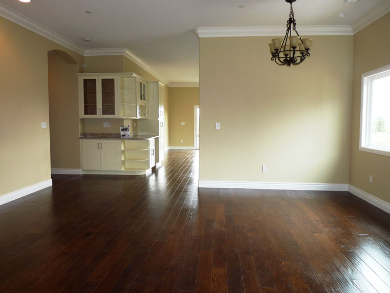 The dramatic two-story living room and stairwell had a primary orientation to the north providing soft light and spaciousness to these areas. Tasteful finishes and an attention to detail made this framing package into a delightful home to live in.